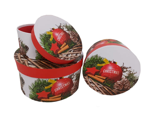 Set 3 cutii rotunde model Craciun H 11