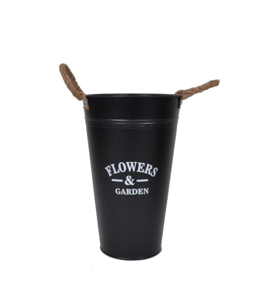 Ghiveci tip vaza, metalic, rotund, uni cu toarte