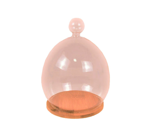 Dom cilindric din sticla cu suport de lemn