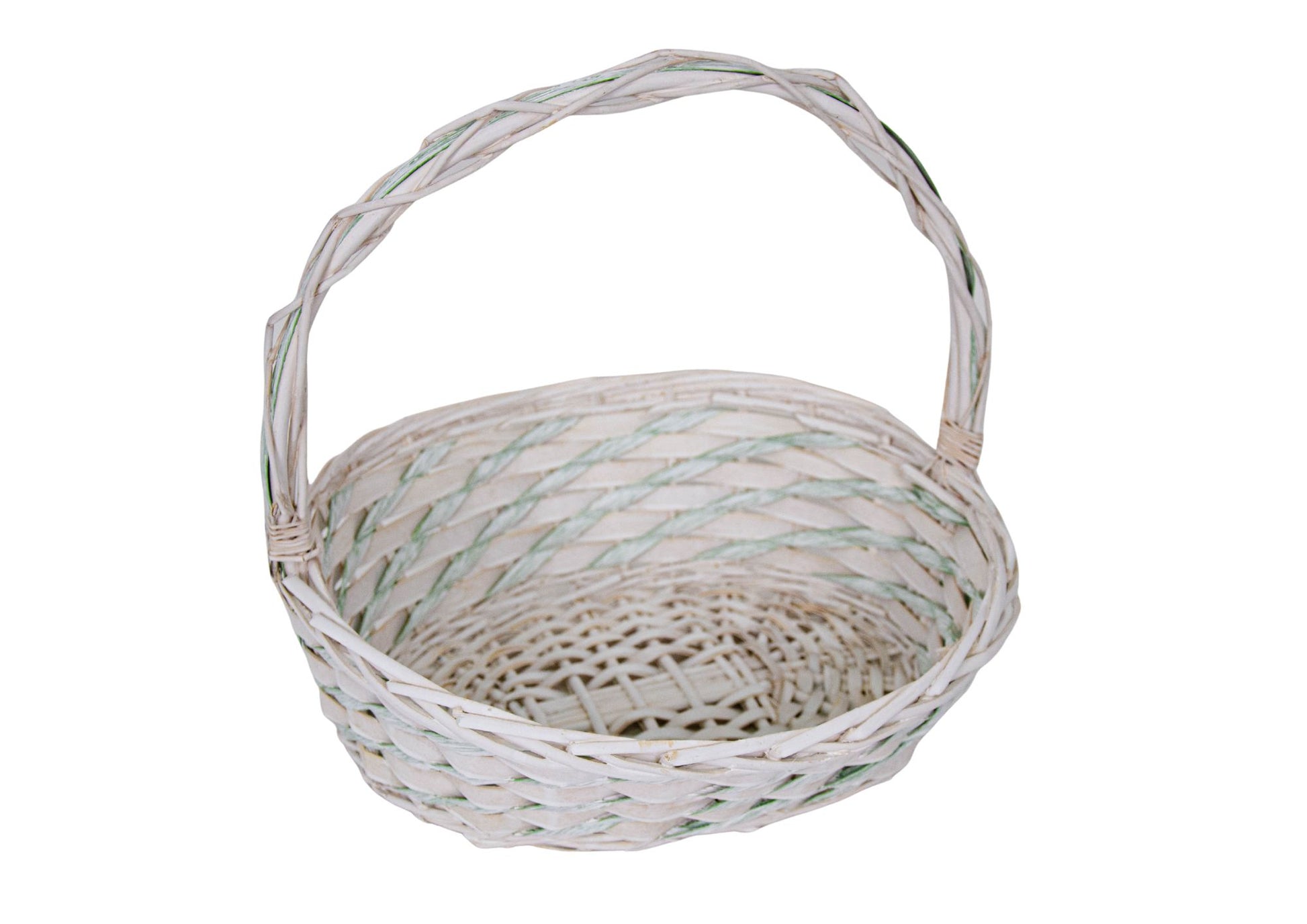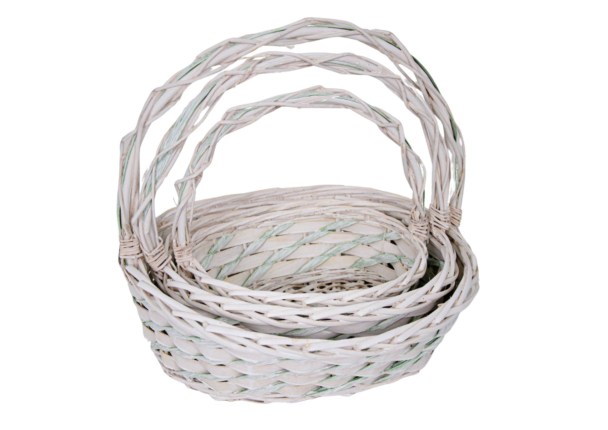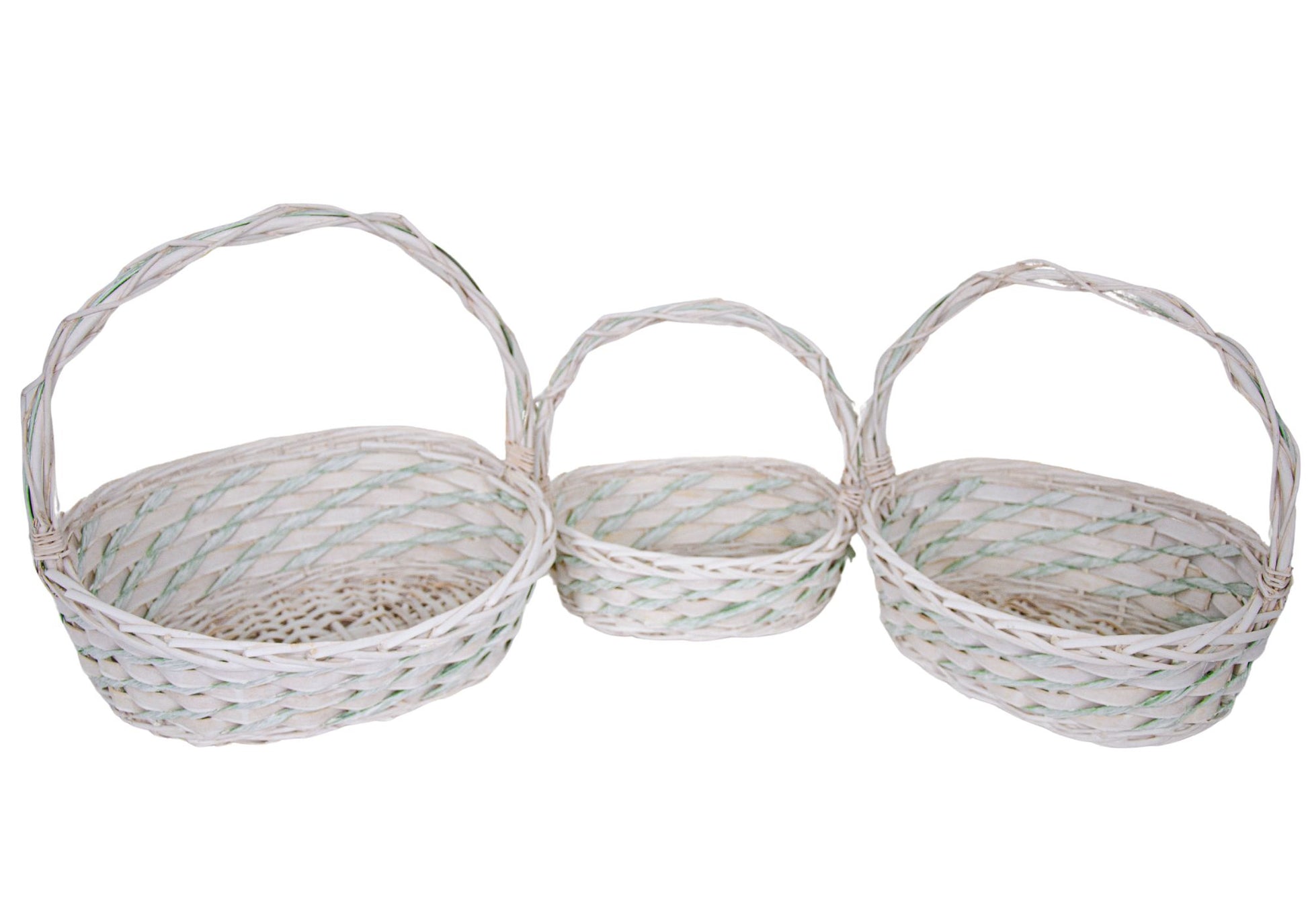 Set 3 Cosuri din Rachita cu Aschii de Lemn si Sfoara Verde, Forma Ovala Alba