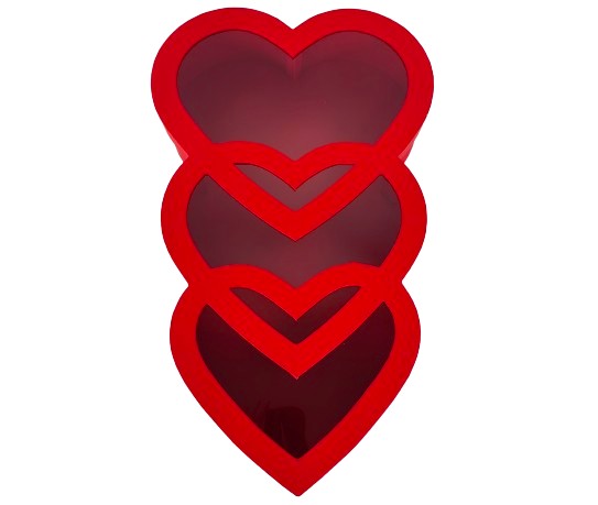 Cutie 3 inimi uni cu capac transparent pentru aranjamente florale romantice si cadouri speciale.