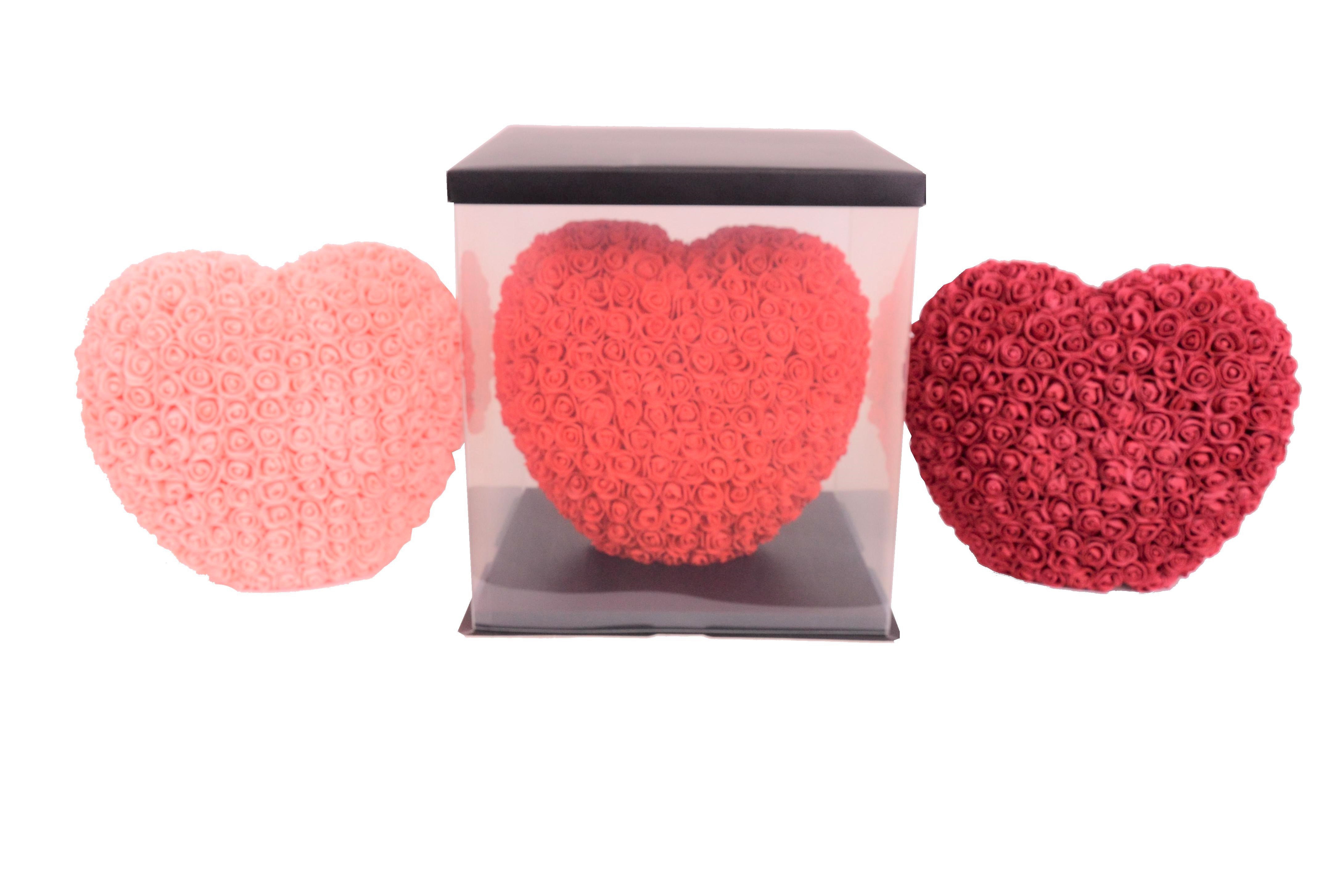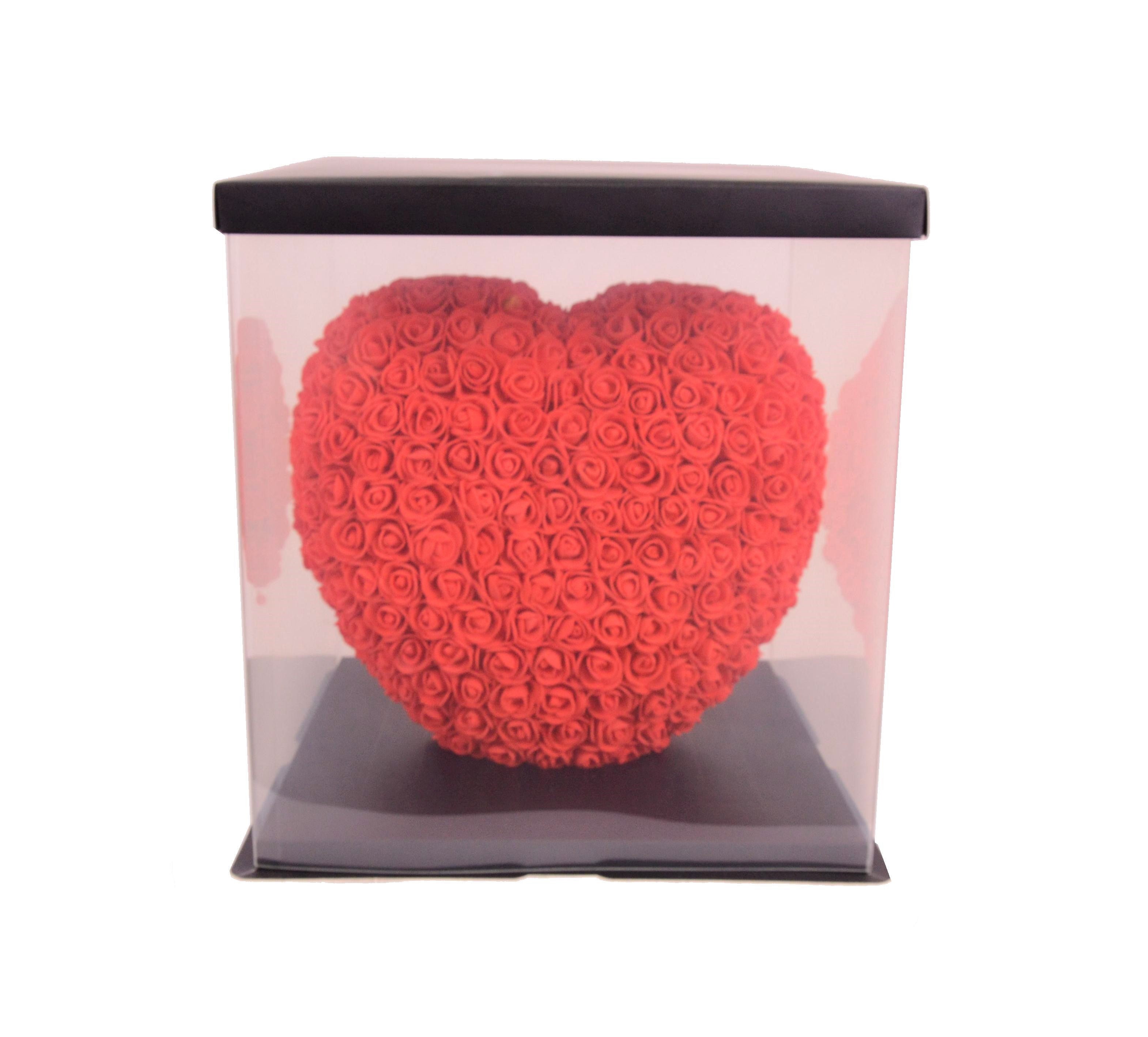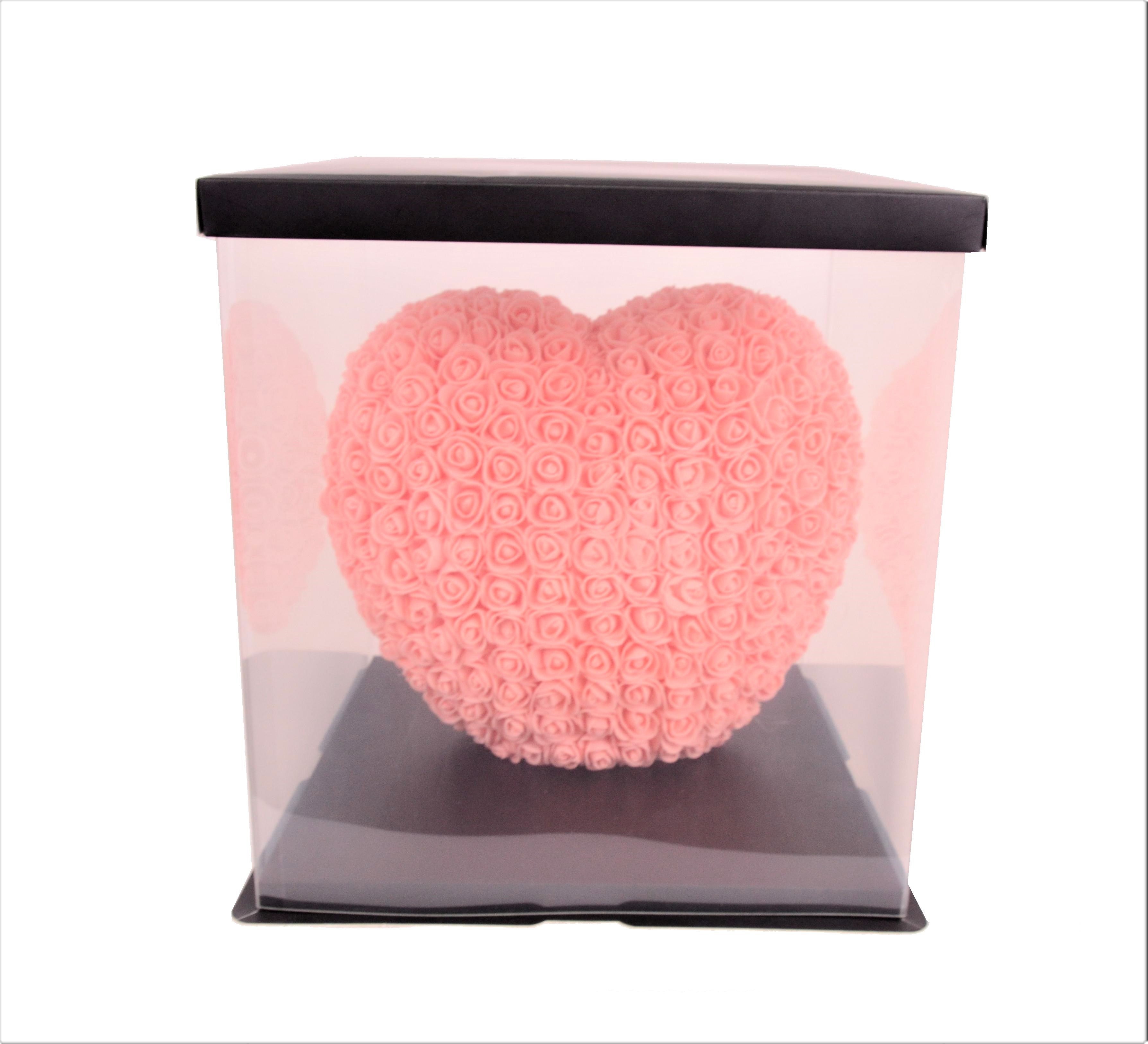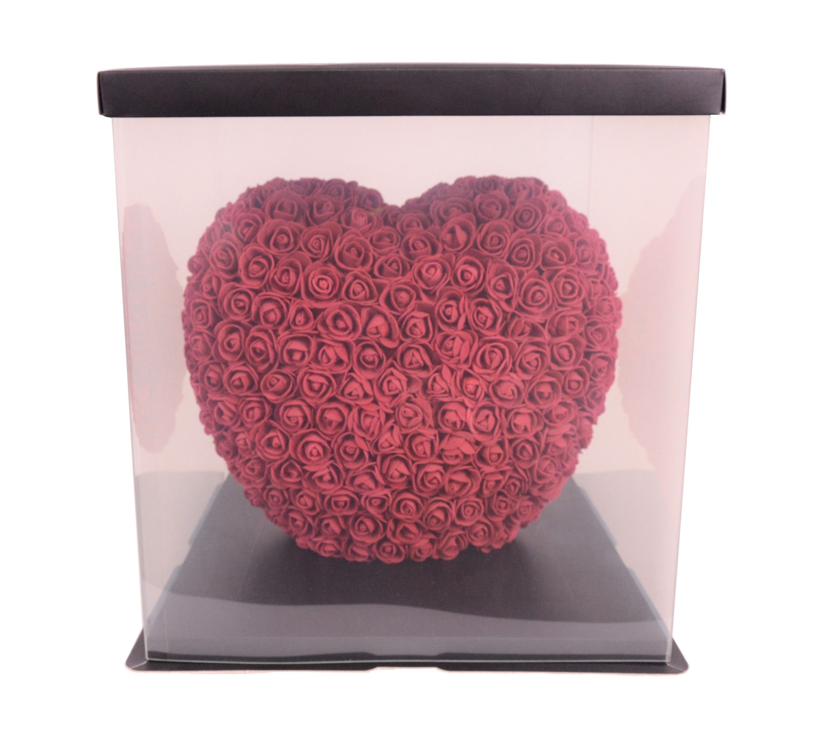 Inima din trandafiri de spuma in cutie transparenta D 35