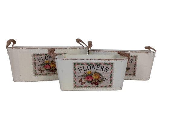Set 3 cosuri dreptunghiulare din lemn cu doua toarte