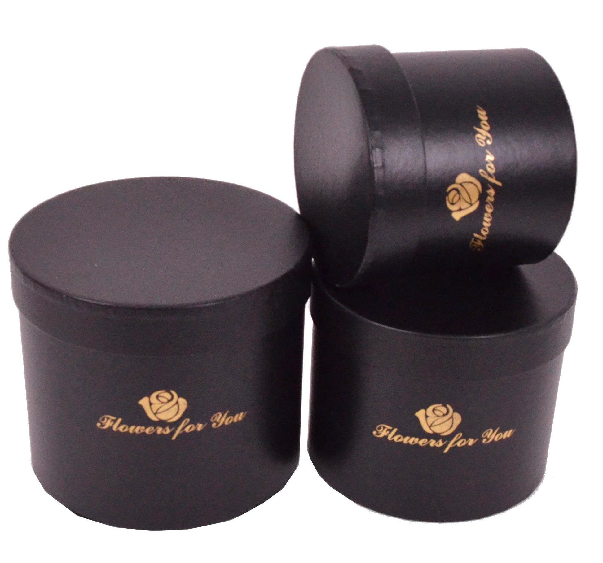 Set de 3 cutii rotunde uni cu inscriptie pentru aranjamente florale elegante si cadouri speciale.