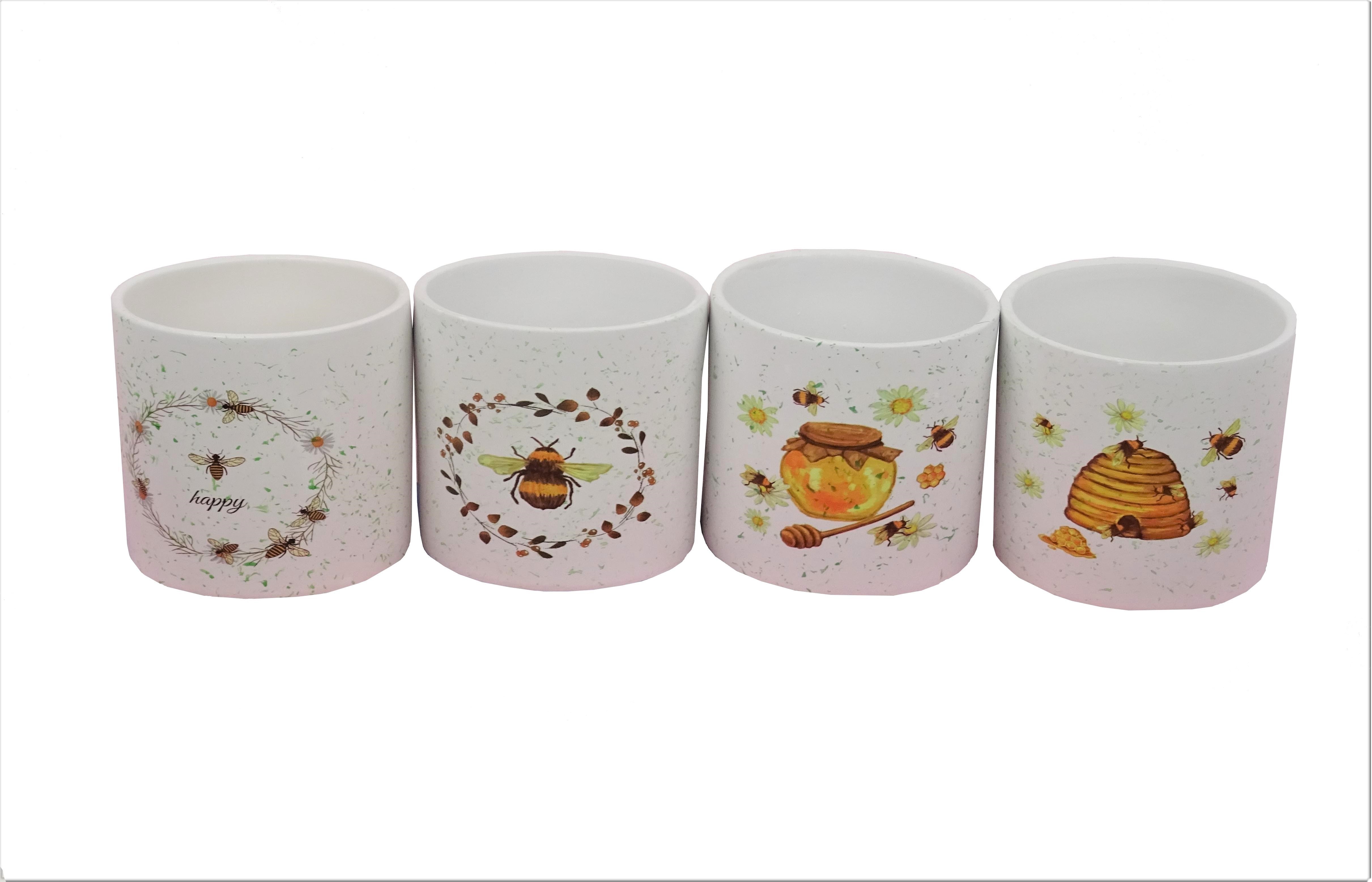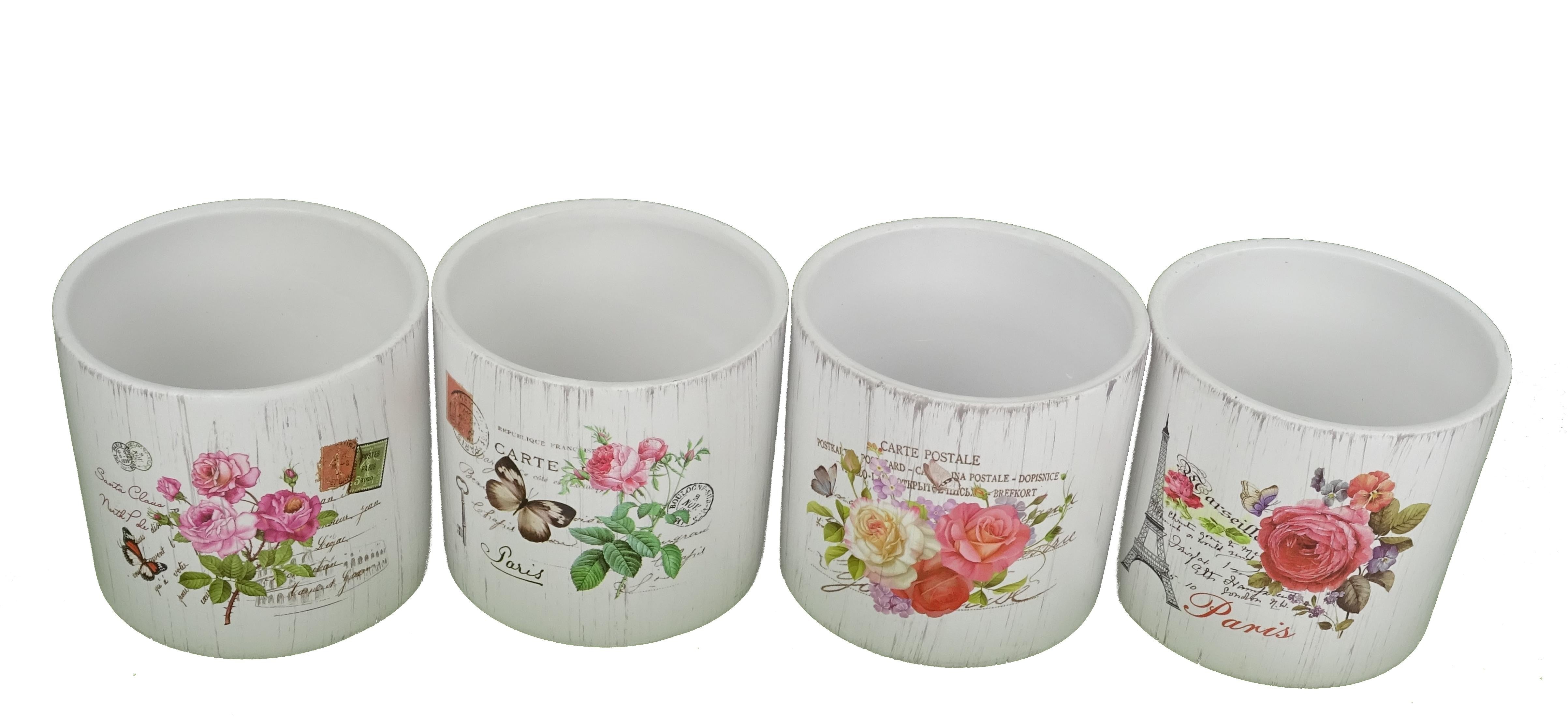 Set 4 vase ceramice rotunde cu flori