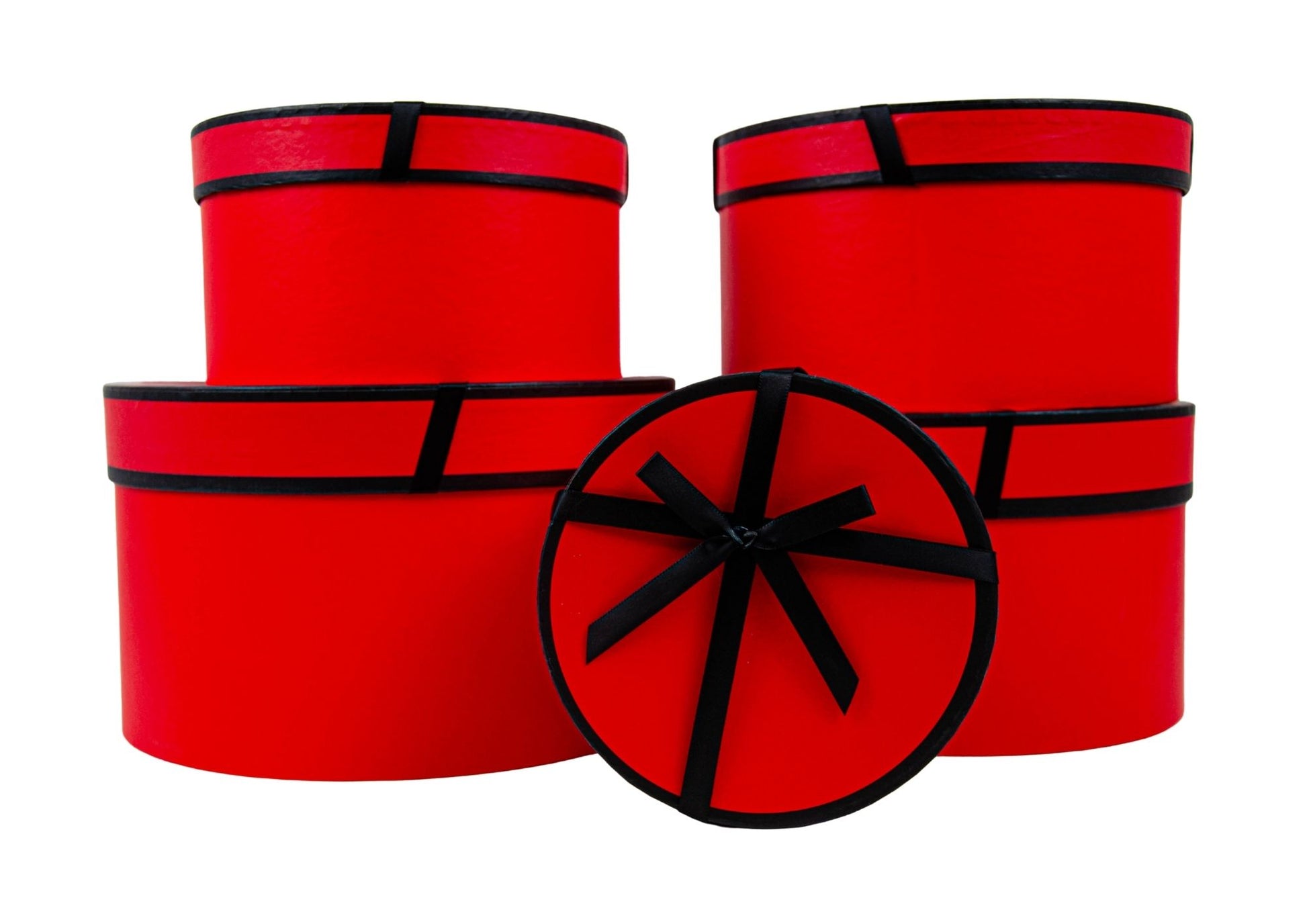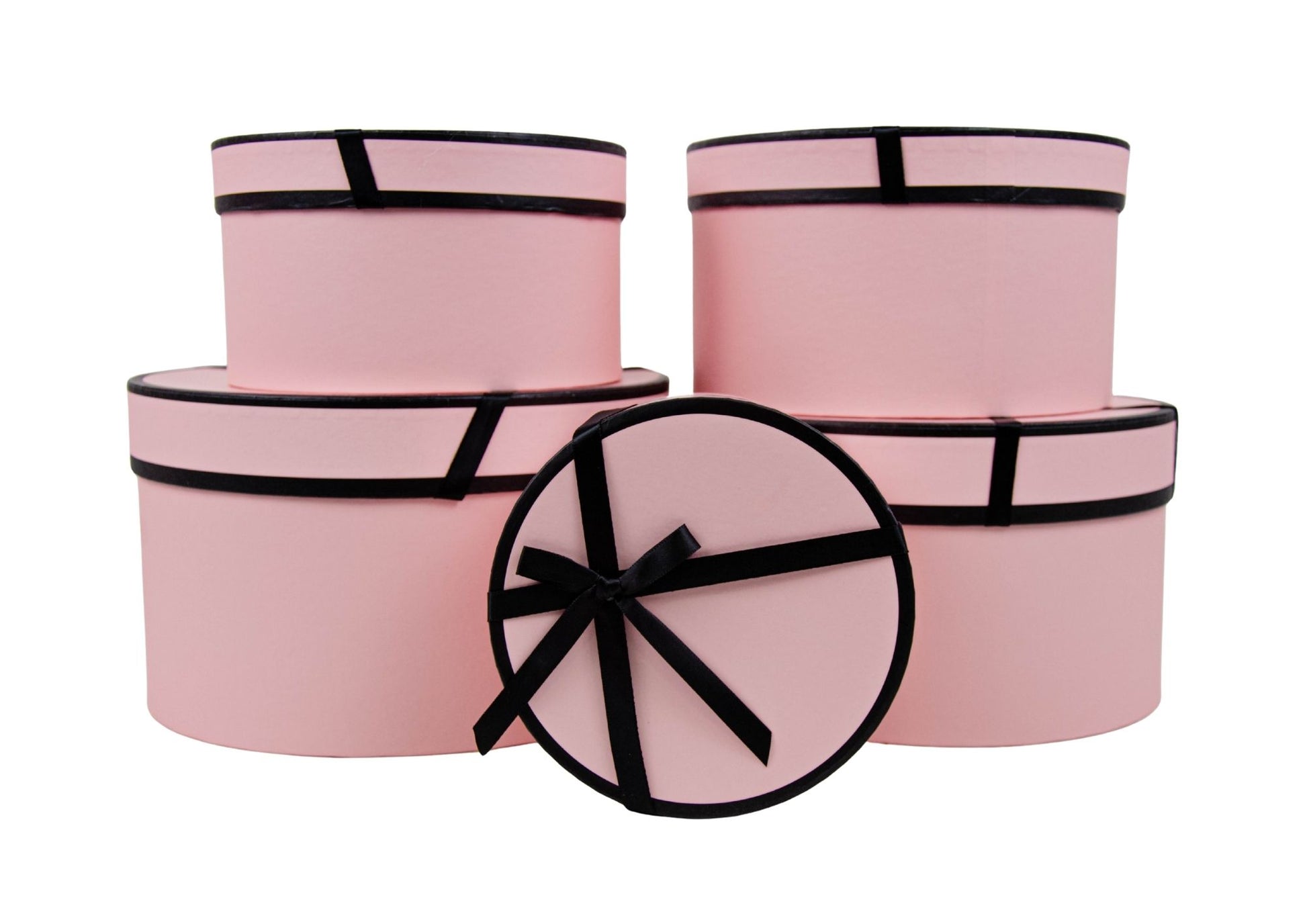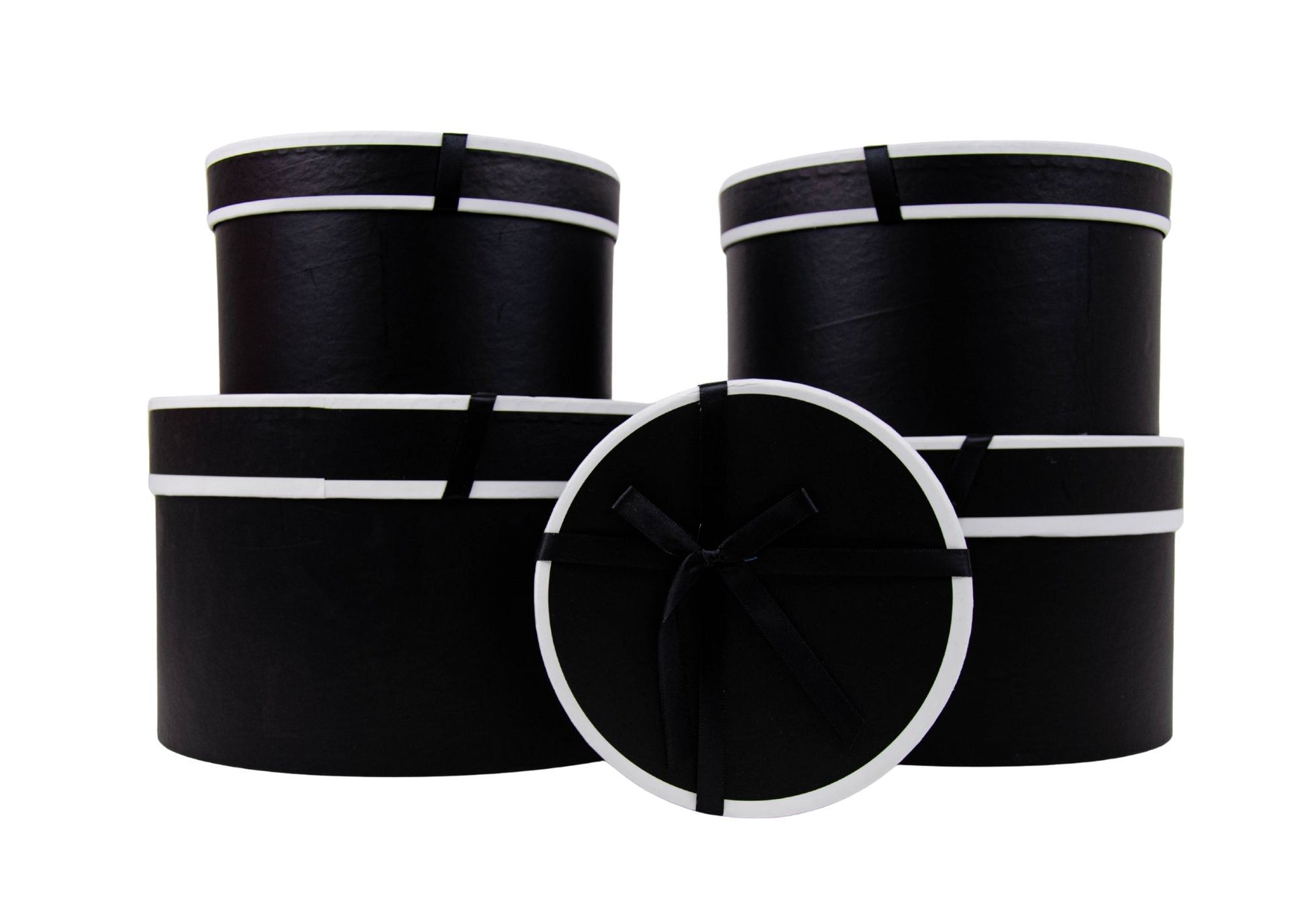 Set de 5 cutii rotunde tip diplomat cu funda pentru aranjamente florale elegante si cadouri speciale.